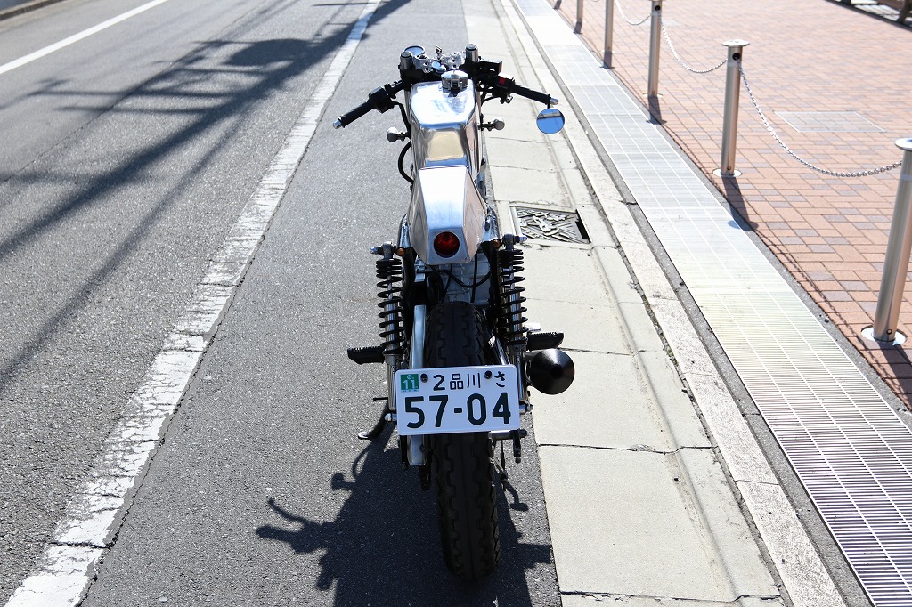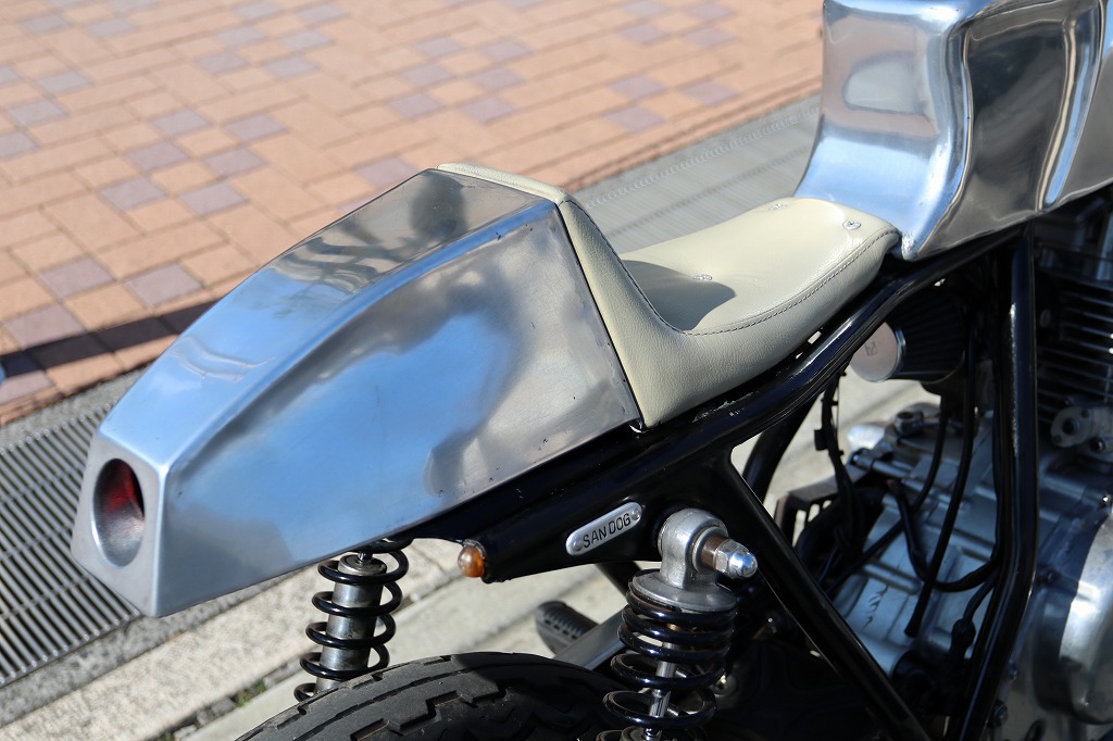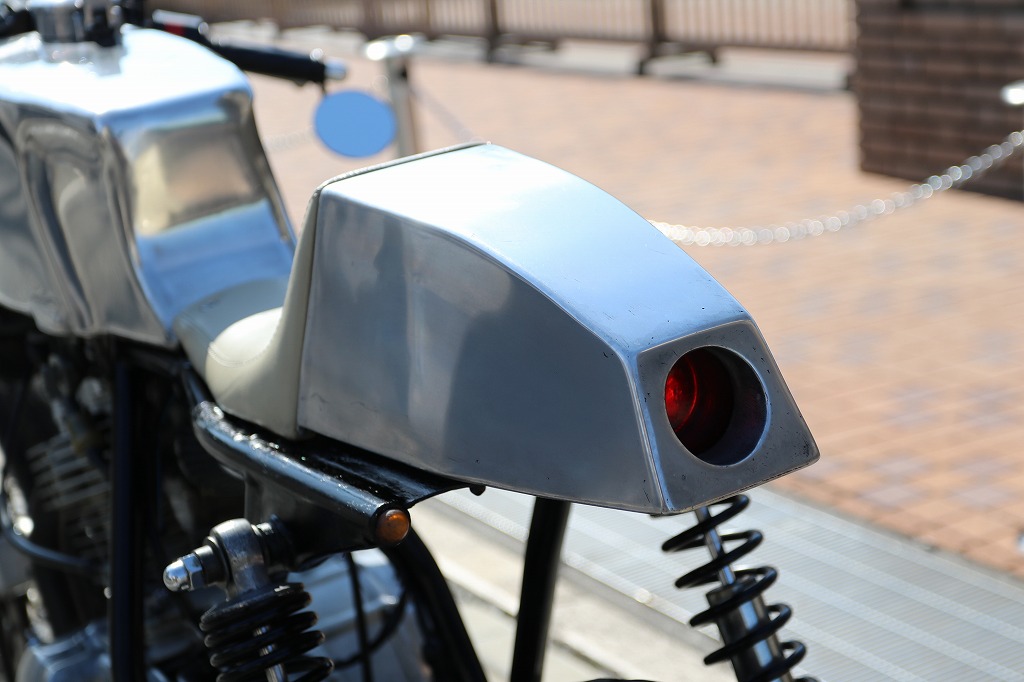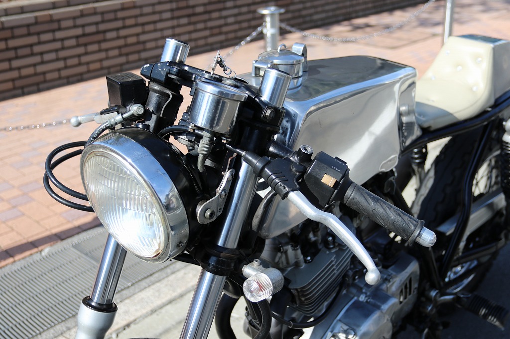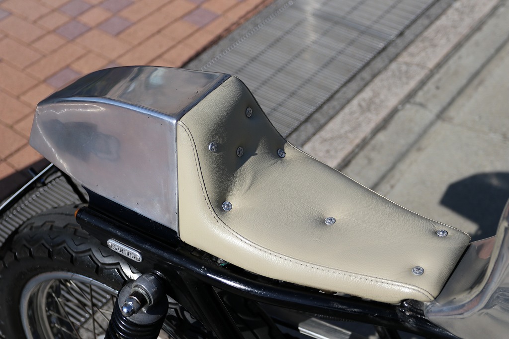この車両はカフェレーサー仕様に、弊社の提携整備工場がワンオフで製作した一台です。