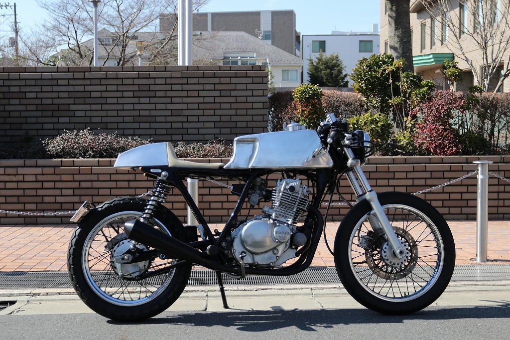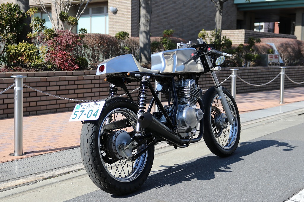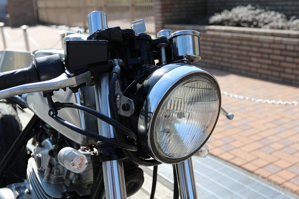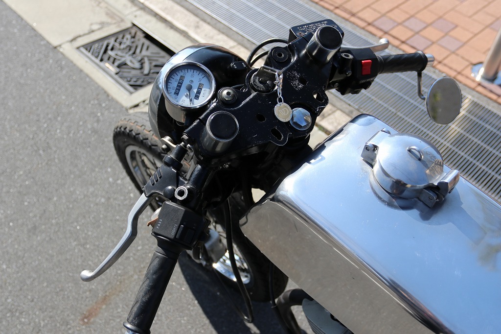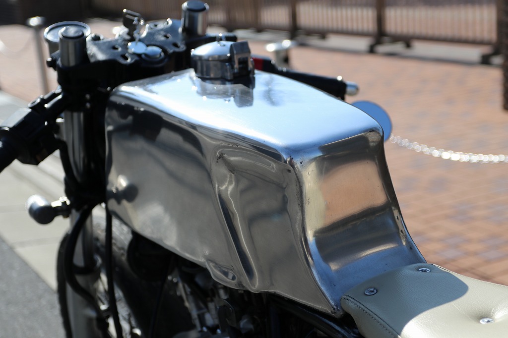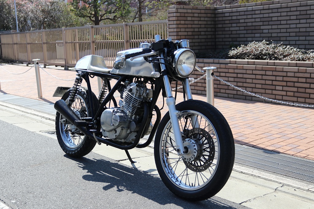 この車両はカフェレーサー仕様に、弊社の提携整備工場がワンオフで製作した一台です。